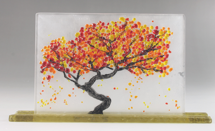 This collection brings together functional and wearable glass, from bowls and platters to jewelry, cards with glass elements, and panels where glass frit is fused to capture natural forms. Each piece is handcrafted, unique, and designed to combine utility with artistic presence.